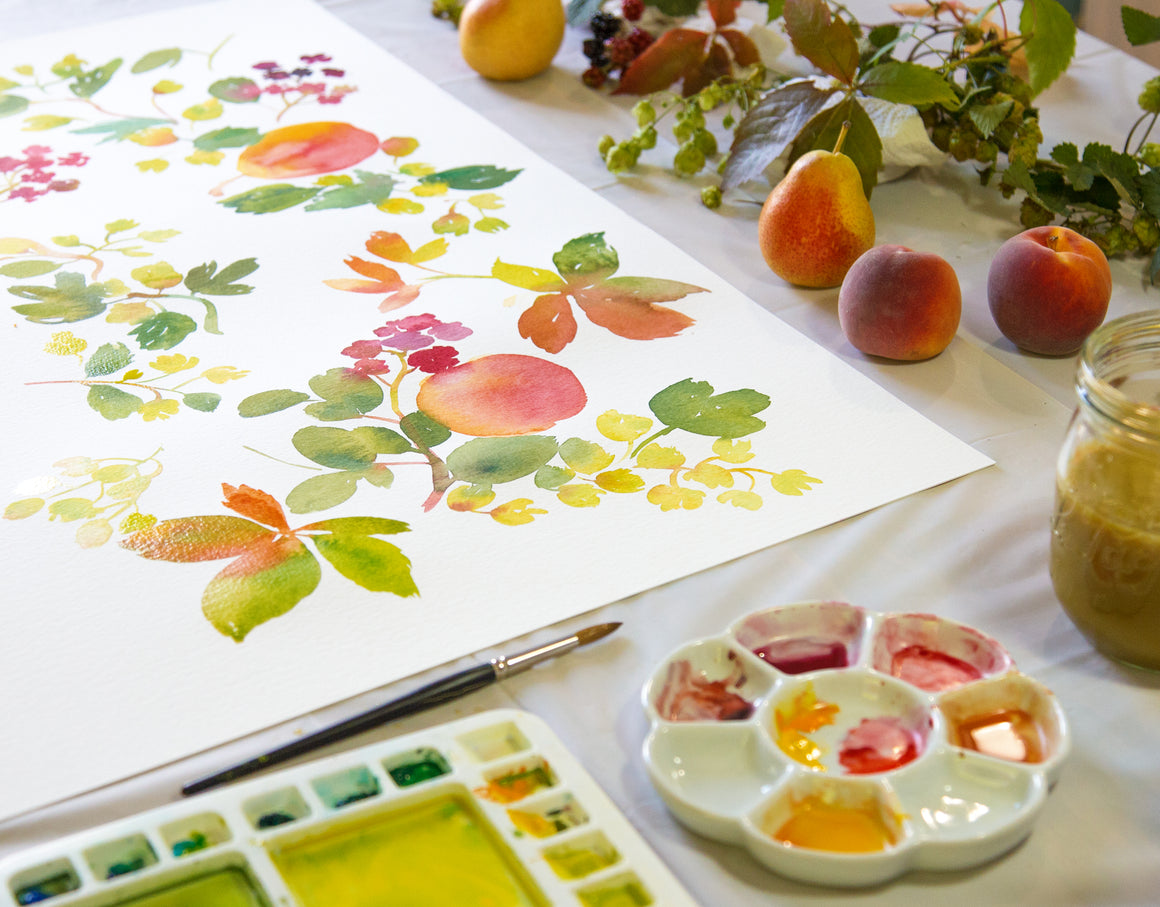 This workshop will give you a basic understanding of how to paint with watercolours. You’ll be shown how to work with pigments, and create a palette of beautiful, harmonious colours. You'll be shown how to make expressive marks to create paintings inspired by autumn plants and fruit arranged on the table.
